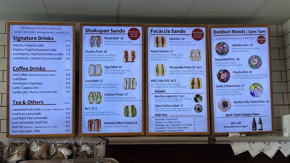 Introducing the menu at Brio Brio Bakery & Café, located in Lake Forest, California. This Asian-owned and women-owned establishment offers a variety of delicious dishes and drinks. From Otsumami Appetizers like Aji Fry and Takoyaki to flavorful Rice Dishes like California Yaki and Wagyu Beef Onigiri, there is something for everyone. Don't miss out on their refreshing Salads such as Caesar Salad and Sea Salad. Wash it all down with Original Horoyoi Cocktails or Japanese Sake options like Dassai or Sparkling Yuzu Cocktail. The menu at Brio Brio Bakery & Café is sure to impress with its unique flavors and classy ambiance. Don't forget to take advantage of their excellent amenities such as outdoor seating, free Wi-Fi, and dog-friendly patio. It's a must-visit spot for a delightful dining experience.